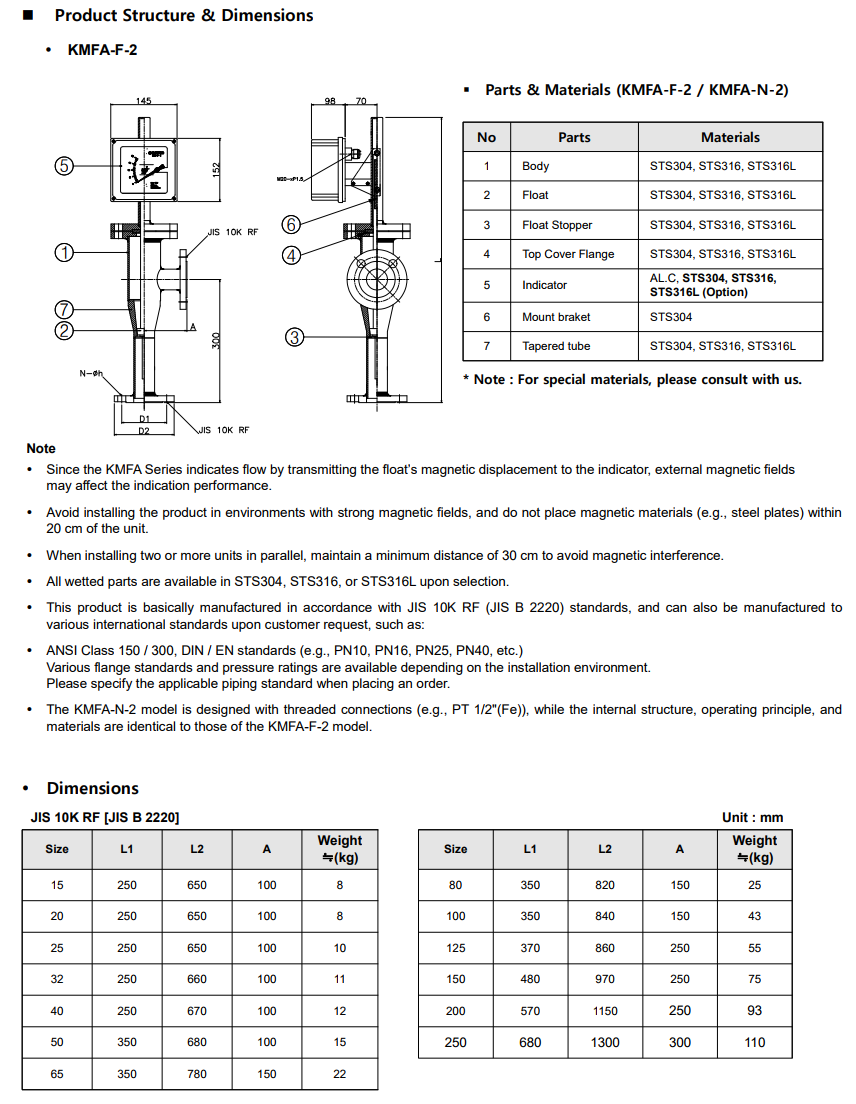 ✔ Wetted materials available in STS304, STS316, and others