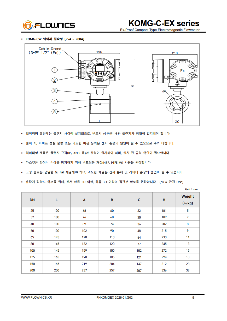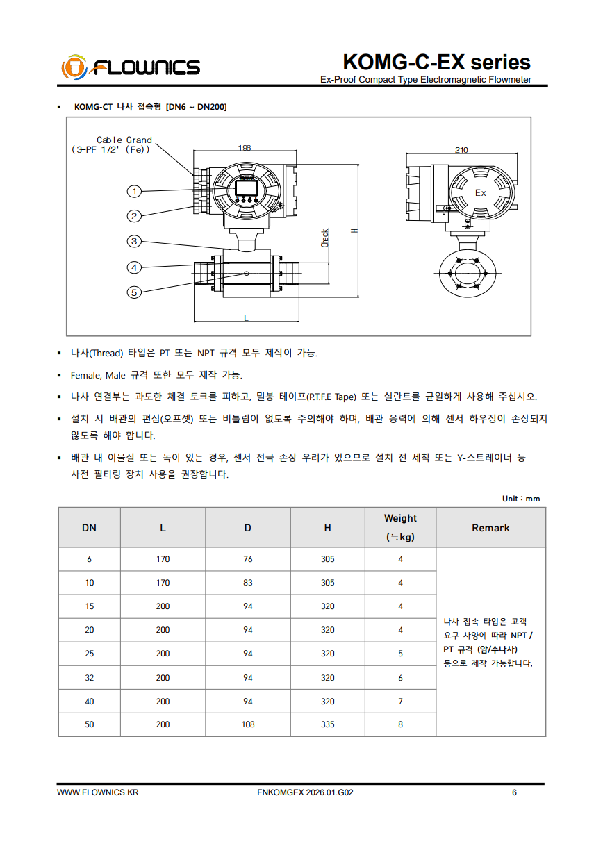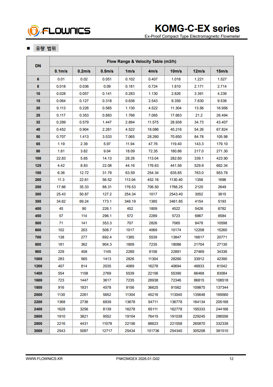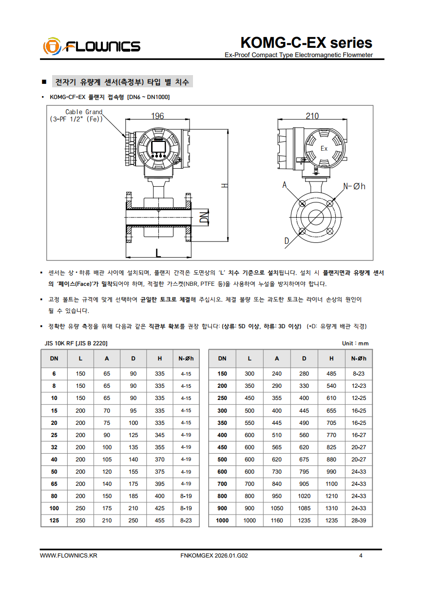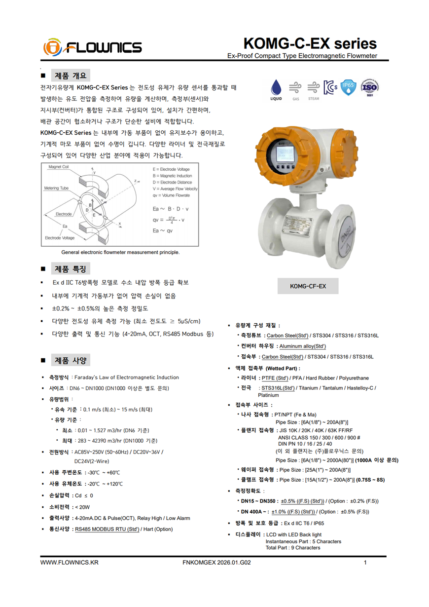 KOMG-CF-EX 일체형 전자기 유량계(Compact Type Electromagnetic Flow Meter)는