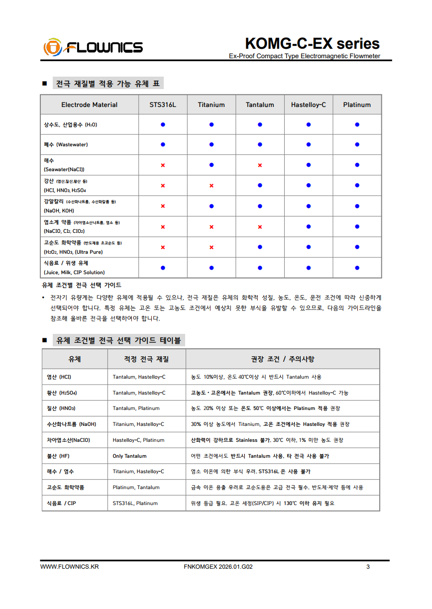 ✔상수도, 폐수, 약품, 슬러리, 식품 등 전도성 액체에 모두 적용