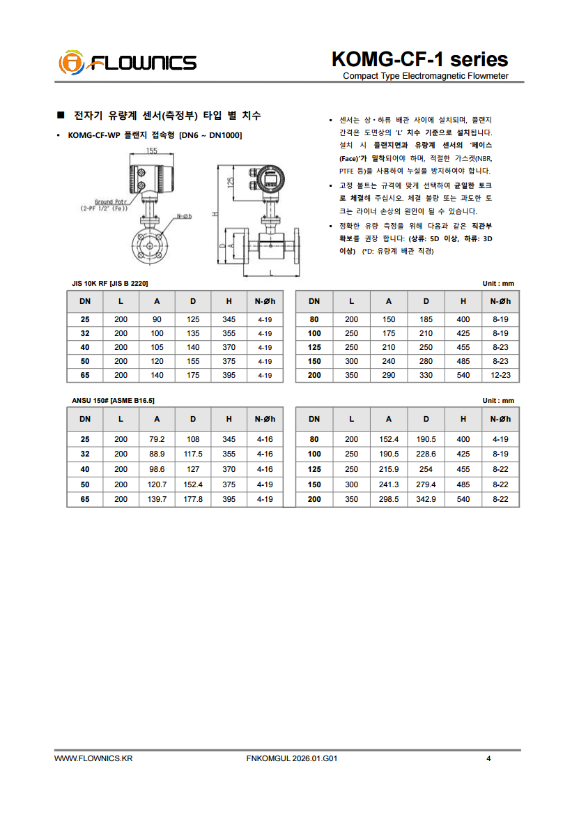 KOMG-CF-1 Series는 전도성 유체의 흐름을 정밀하게 측정하는 전자기 유량계입니다. 센서와 지시부(컨버터)가 일체형으로 설계되어 설치가 간편하고, 빠른 납기와 합리적인 가격으로 일반 산업현장에 최적화된 솔루션을 제공합니다. 내부에 가동 부품이 없어 압력 손실이 거의 없으며, 내구성이 뛰어나 장기간 안정적인 운용이 가능합니다. 상수도, 폐수, 일반 약품, 식음료 등 다양한 분야에서 정확한 유량 측정을 지원합니다.