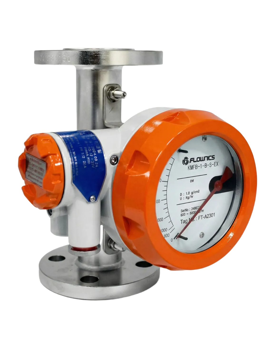 KMFB 시리즈는 KMFA 모델의 상위 제품으로, Ex d IIC T4 방폭 등급의 내압 방폭형 하우징을 채택하여 가연성 가스나 폭발 위험 환경에서도 안전한 운용이 가능한 금속관 면적 유량계입니다.