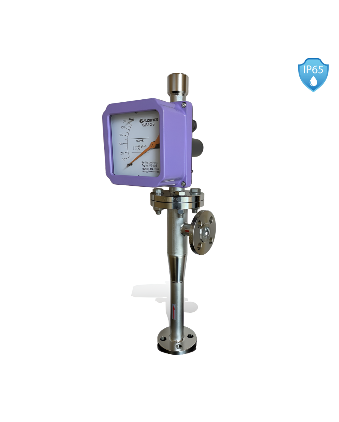 KMFA-F-2 시리즈는 하부 유입 / 측면 배출 구조로 설계된 금속관 면적식 유량계로, 수직 방향으로 설치되며 하부에서 유입된 유체가 플로트를 상승시키며 측면으로 배출됩니다. 이 구조는 제한된 공간이나 배관 조건에서도 유량 측정과 설치 편의성을 동시에 만족시키며, 액체, 가스, 스팀 등 다양한 유체에 적용 가능하여 산업 현장에서 널리 사용됩니다. 본 제품은 ±1.5% F.S.의 정확도와 10:1 이상의 측정 범위를 제공하며, 4–20mA 아날로그 출력, 리드스위치 기반 알람 접점 기능 등의 옵션도 지원합니다. 내식성, 내열성, 내압성이 우수한 구조로 가혹한 환경에서의 연속 계측에 적합한 솔루션을 제공합니다.