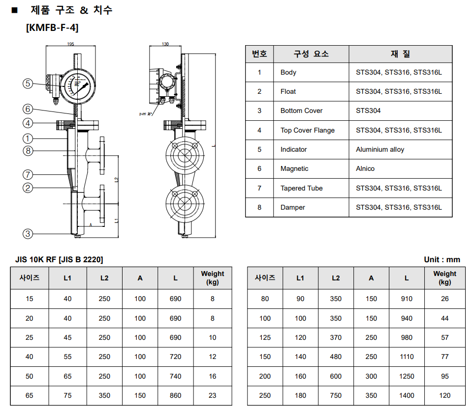 ✔ 접액부 재질: STS304, STS316 등 다양한 재질 선택 가능