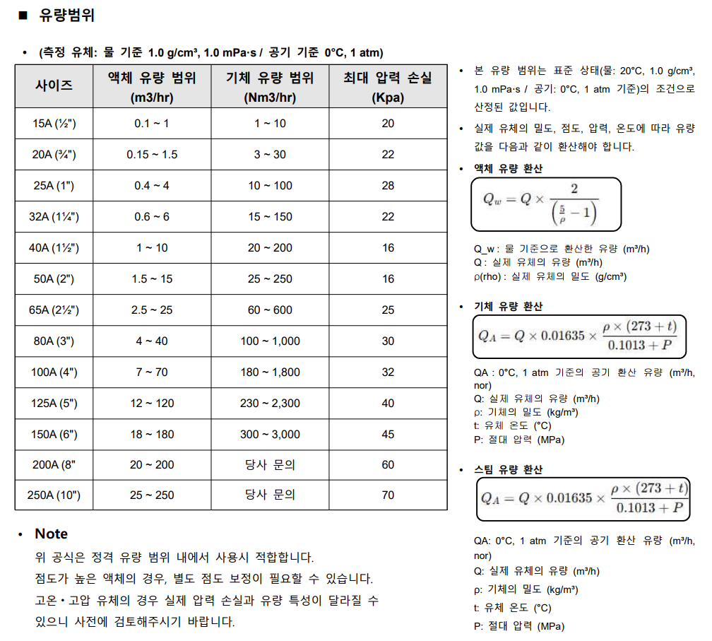 ✔ ±1.5% F.S. 수준의 우수한 정밀도 및 10:1 유량 측정 범위