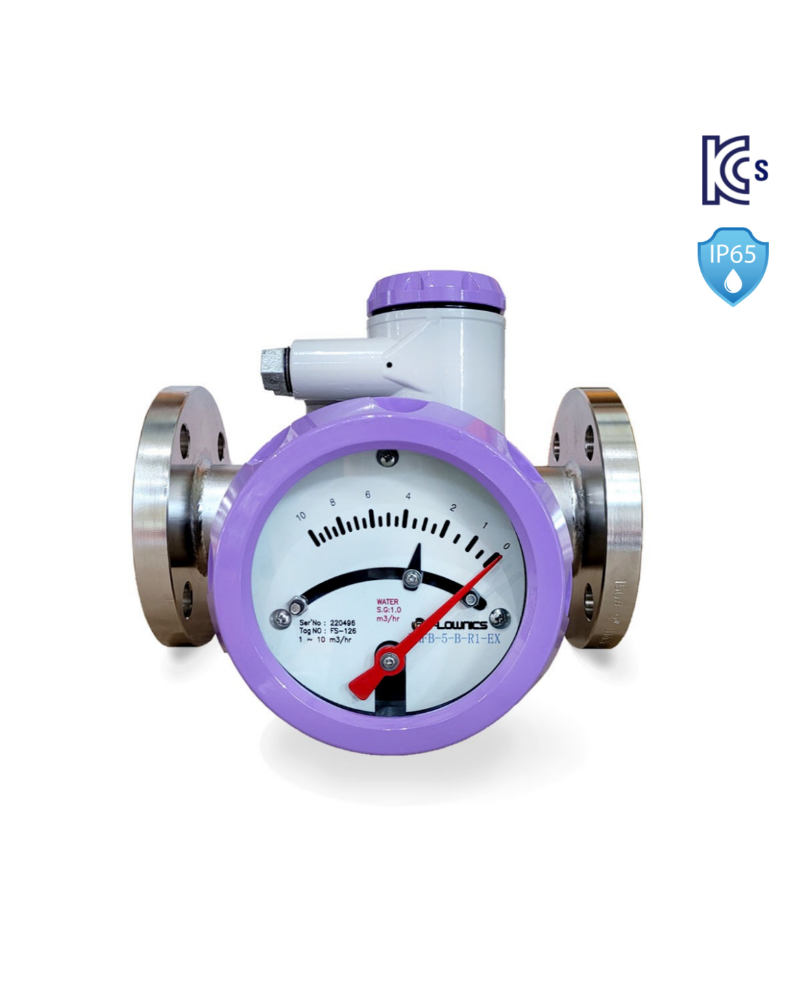 유량은 내부 플로트의 위치에 따라 지시계 바늘을 통해 직관적으로 확인할 수 있으며, 4–20mA 출력, 리드스위치 알람 접점 등의 옵션을 통해 제어 시스템과의 연동도 용이합니다. Ex d IIC T4 방폭 등급을 만족하는 구조로, 위험지역에서도 안정적으로 계측 운용이 가능한 신뢰성 높은 솔루션입니다.