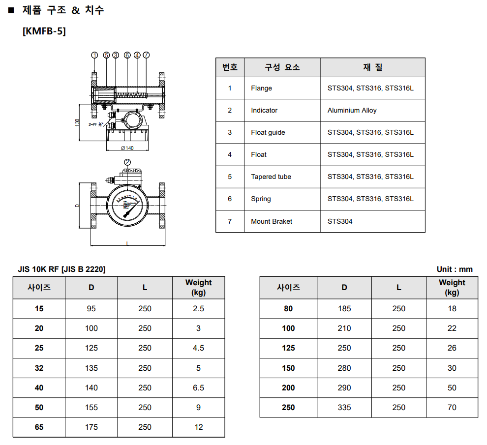 ✔ 접액부 재질: STS304, STS316 등 선택 가능