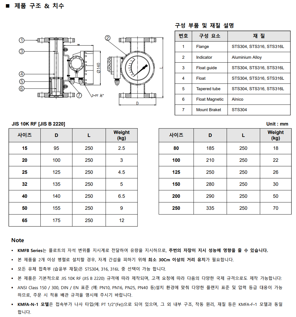 ✔ 플로트 자기결합 방식 – 정확하고 안정적인 유량 지시