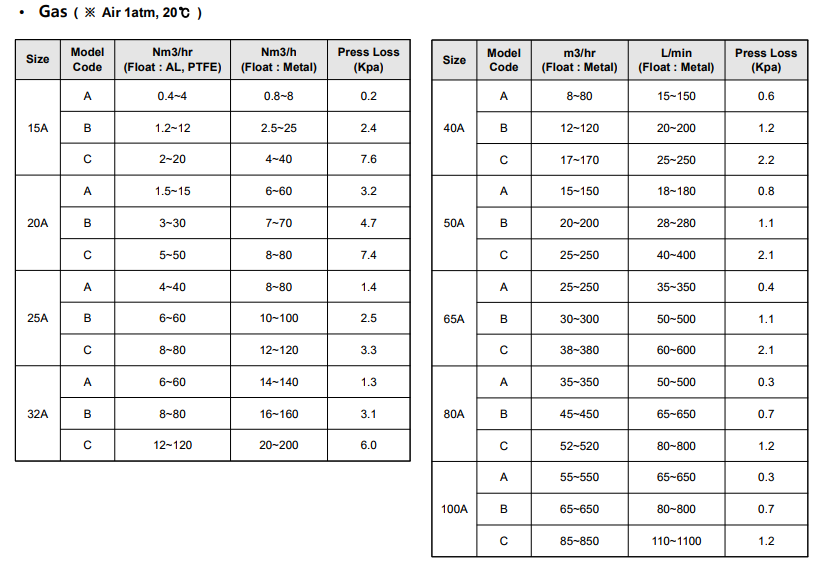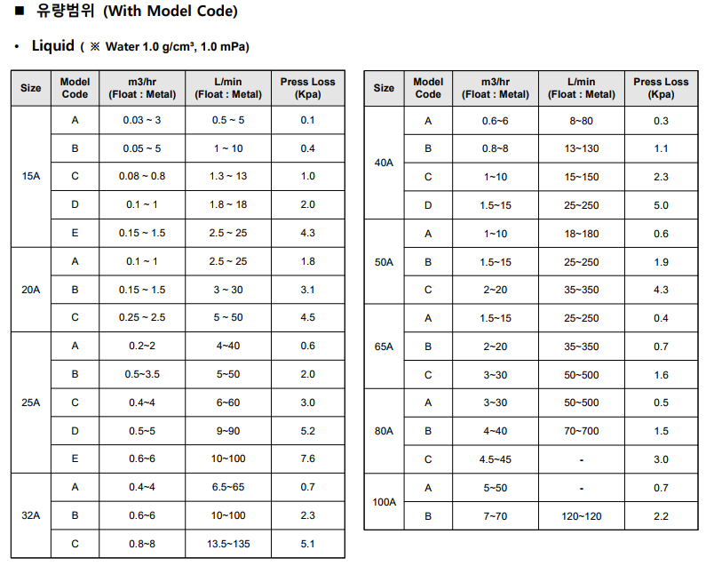 ✔ 다양한 플로트, 패킹, 바디 재질 옵션 선택 가능