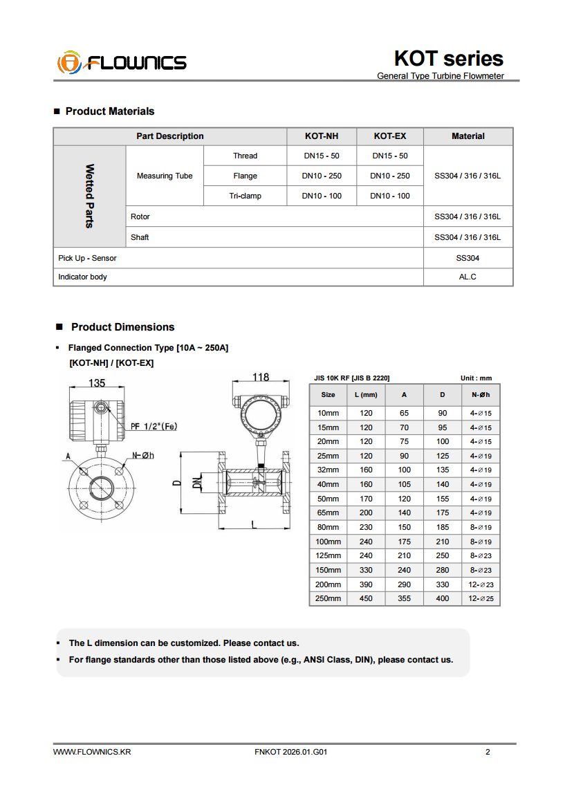 With a high accuracy of ±0.5% to ±1.0%, the KOT Series provides excellent linearity and repeatability, making it ideal for applications requiring precise and reliable flow monitoring.