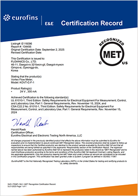 KOVT 볼텍스 유량계 NRTL-UL 인증서
