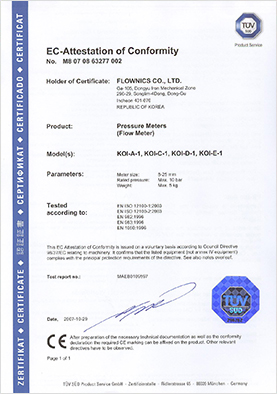 KOMG 전자기 유량계 NRTL-UL 인증서