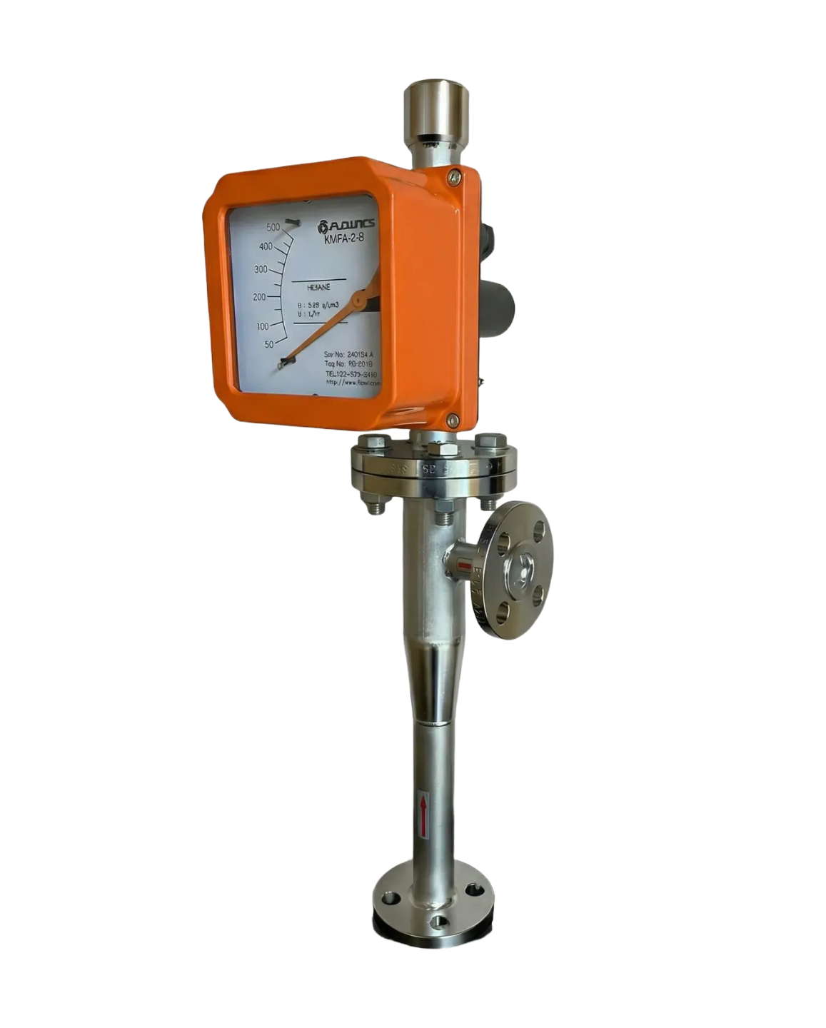 KMFA-F-2 시리즈는 하부 유입 / 측면 배출 구조로 설계된 금속관 면적식 유량계로, 수직 방향으로 설치되며 하부에서 유입된 유체가 플로트를 상승시키며 측면으로 배출됩니다. 이 구조는 제한된 공간이나 배관 조건에서도 유량 측정과 설치 편의성을 동시에 만족시키며, 액체, 가스, 스팀 등 다양한 유체에 적용 가능하여 산업 현장에서 널리 사용됩니다. 본 제품은 ±1.5% F.S.의 정확도와 10:1 이상의 측정 범위를 제공하며, 4–20mA 아날로그 출력, 리드스위치 기반 알람 접점 기능 등의 옵션도 지원합니다. 내식성, 내열성, 내압성이 우수한 구조로 가혹한 환경에서의 연속 계측에 적합한 솔루션을 제공합니다.